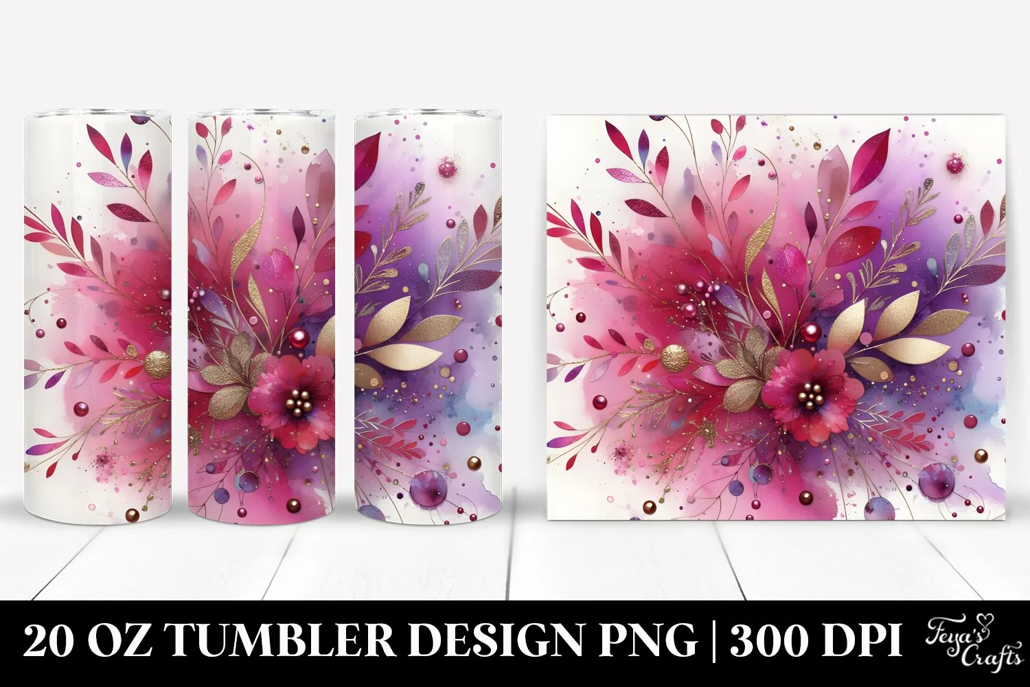 Sticker Summer Easter Colorful Flower Magenta Watercolorbackground Sublimation Tumbler Metallicinsertions