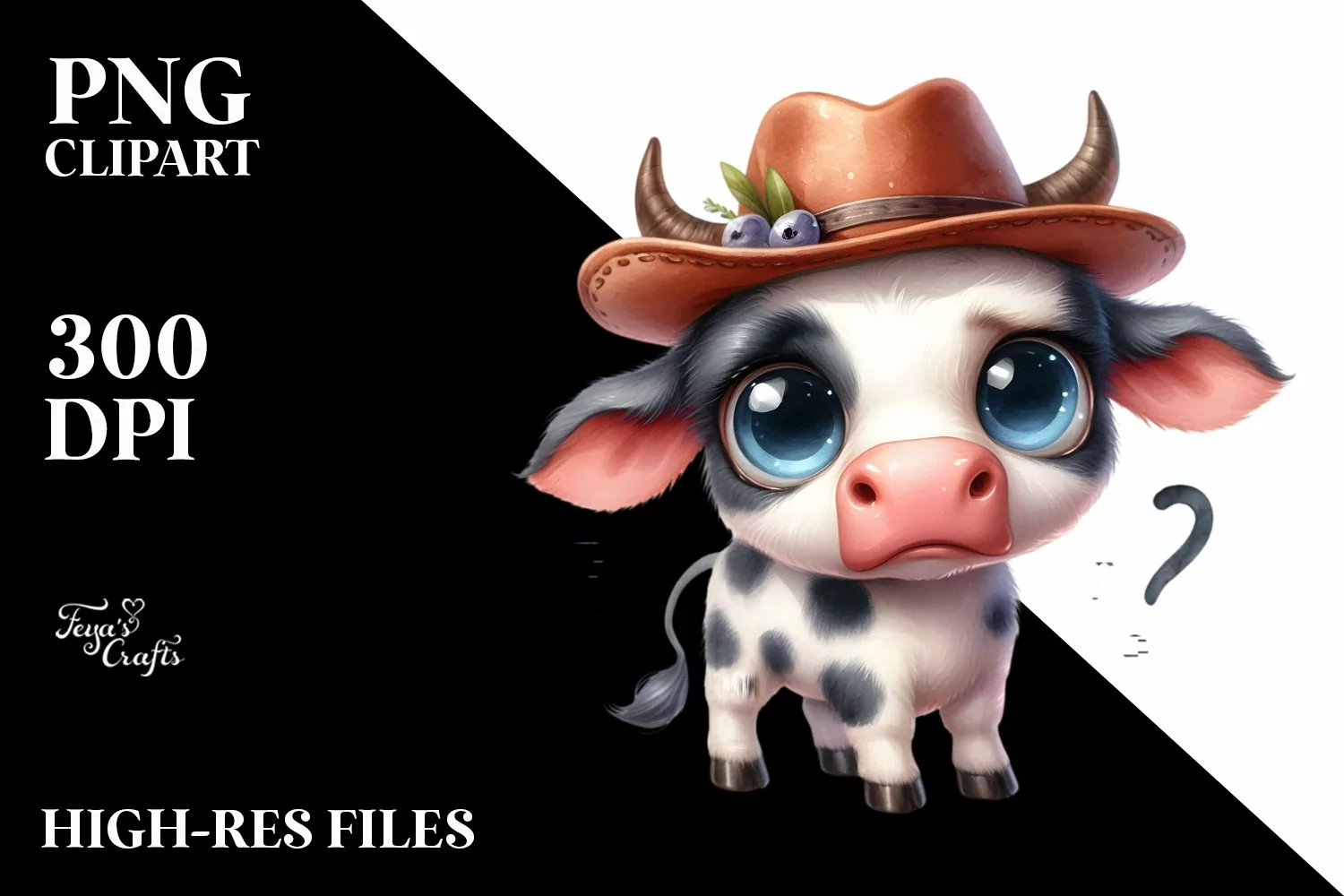 Expressive Baby Cow Confused Watercolor | Sublimation |