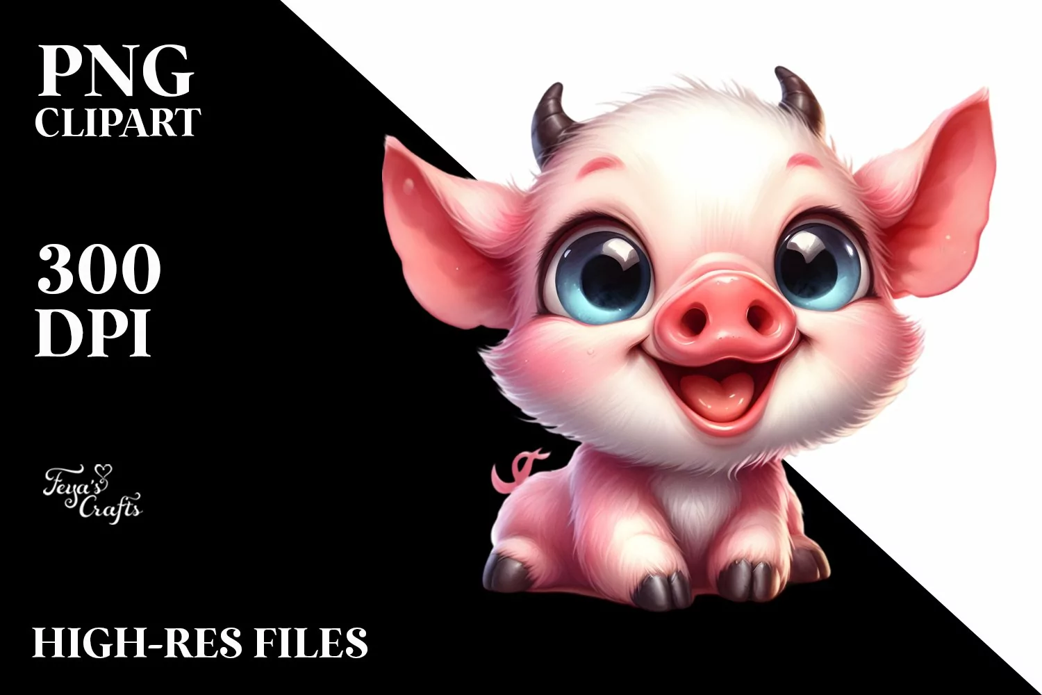 Funny Baby Pig Goat with Big Eyes|Summer Sticker Flower example image 1