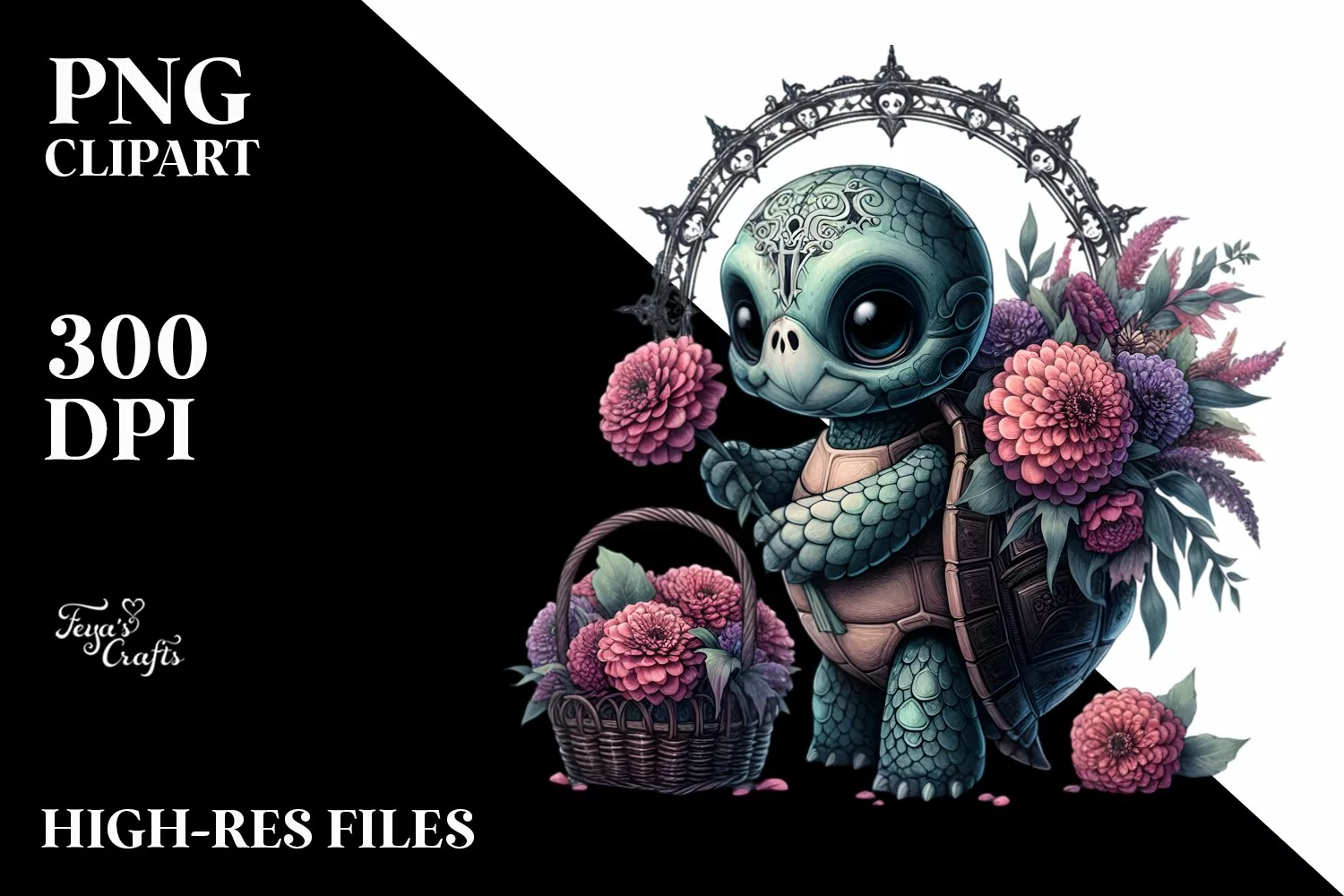 Similar Design Products to Gothic Baby Turtle with Zinnia Bouquet | Clipart
