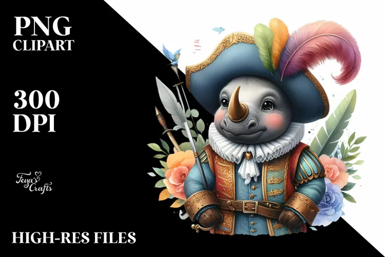 Similar Design Products to Colorful Baby Rhino Musketeer Suit Clipart