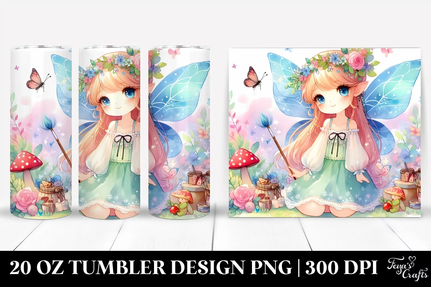 Colorful Fairy White Background Watercolor | 20 Oz Tumbler example image 1