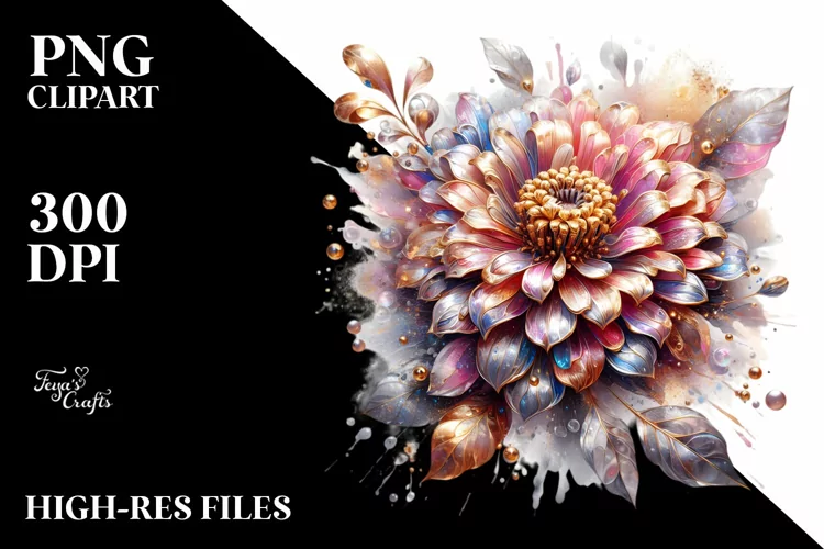 Watercolor Flower Shiny Golden Splash Abstract Detailed Metallic Sew Zinnia