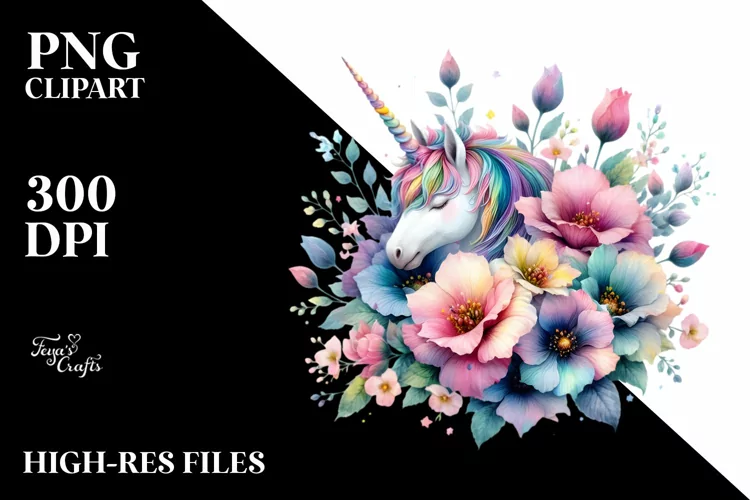 Similar Design Products to Colorful Watercolor Unicorn Flower Clipart