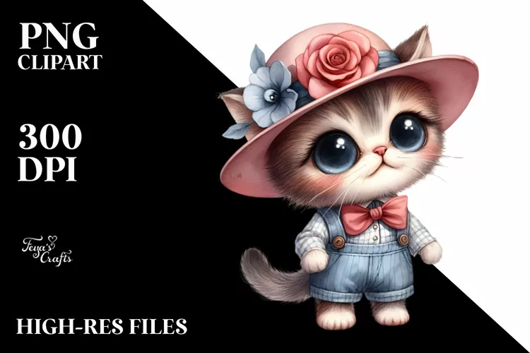 Sticker Summer Flower Clipart Cat Hat Sublimation Dressed Bigeyes Standingup