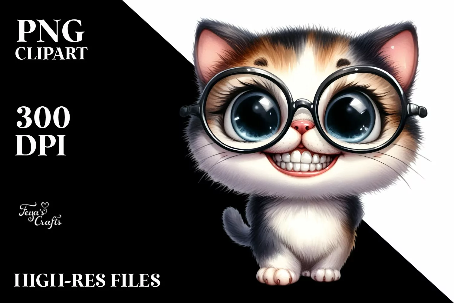 Funny Clipart Cat Glasses Expressive Sublimation Goofysmile Caricature-like Bigteeth Elementsnottouchingthecanvasedges