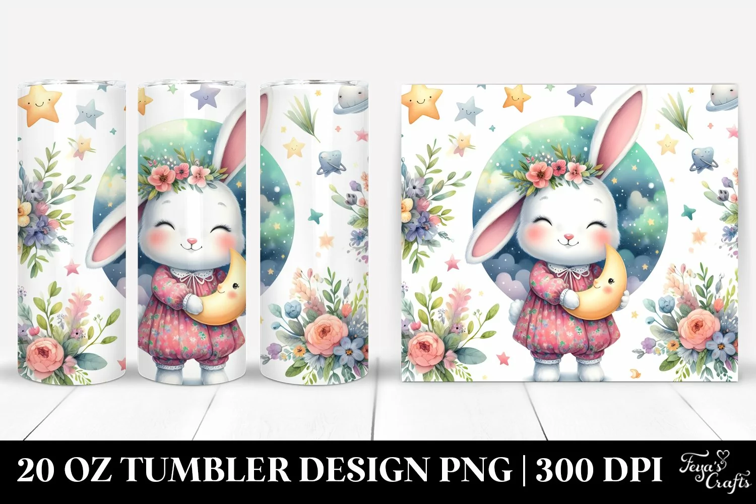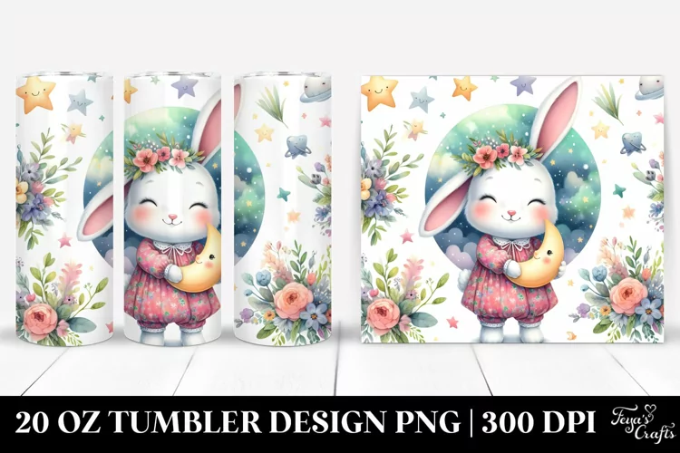 Sticker Whimsical Summer Easter Flower Moon Stars Sublimation Tumbler Cutebabyrabbit