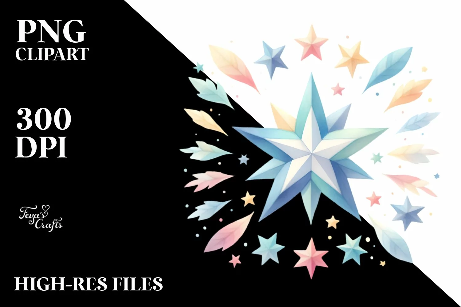 Simple Star Pastel Watercolor | Sublimation | Clipart example image 1