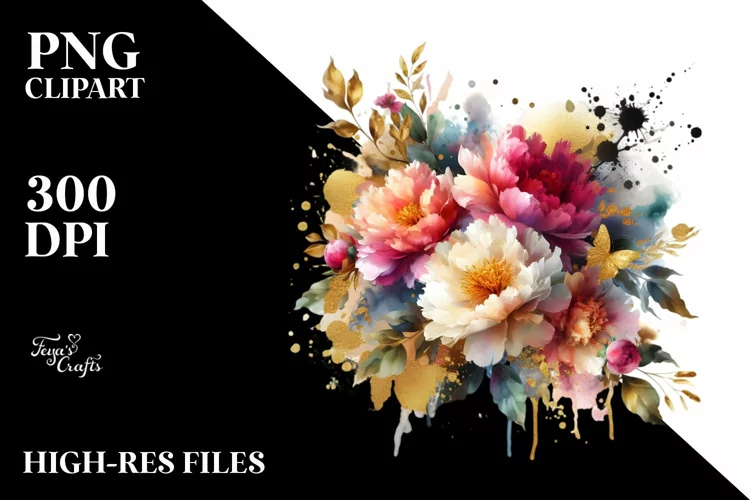 Similar Design Products to Vibrant Bouque Gold Foil Peonies | Sublimation | Clipart