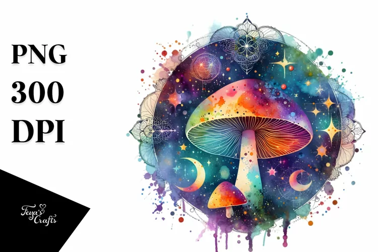 Similar Design Products to Vibrant Watercolor Magical Celestial Astral Mushroom Clipart