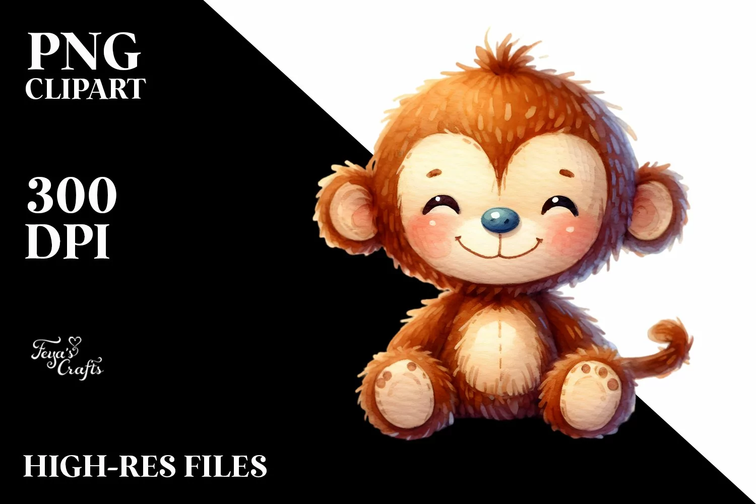 Colorful Watercolor Plush Monkey | Clipart