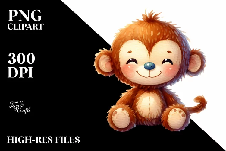 Similar Design Products to Colorful Watercolor Plush Monkey | Clipart