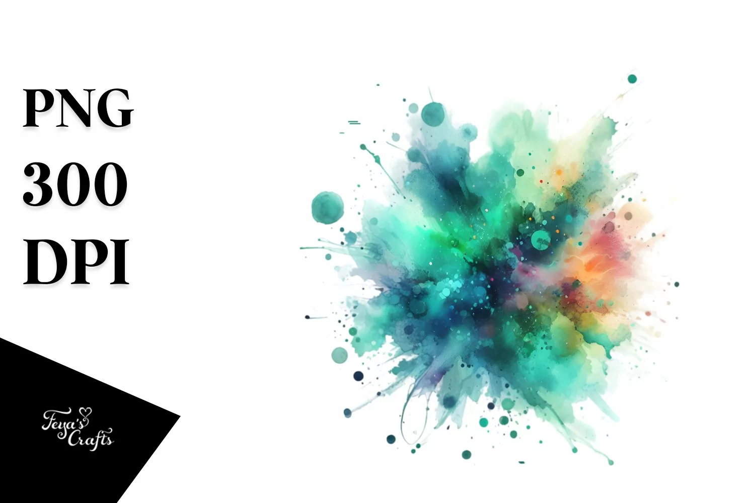 Colorful Greenish Watercolor Splash | Sublimation Clipart example image 1