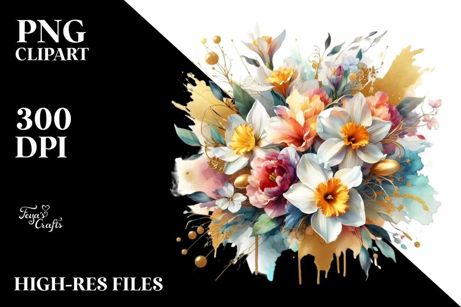 Similar Design Products to Vibrant Gold Foil Bouquet with Narcissus | Clipart