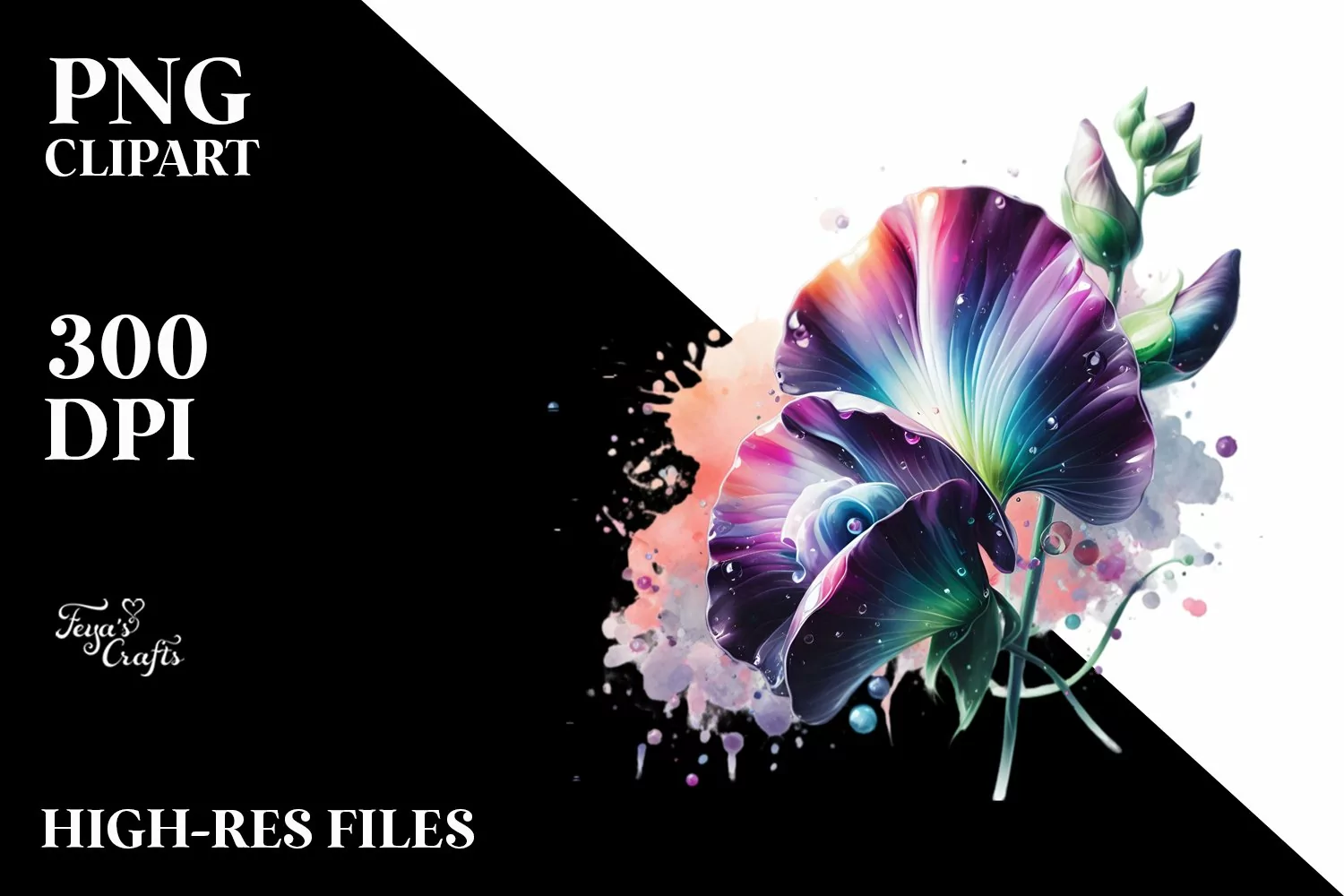 Sticker Summer Flower Shiny Png Sublimation Sweetpea Watercolorsplash Glasslikematerial