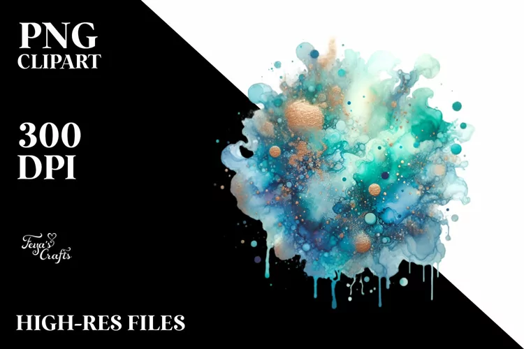 Similar Design Products to Colorful Cyan Watercolor Splash Glitery | Clipart