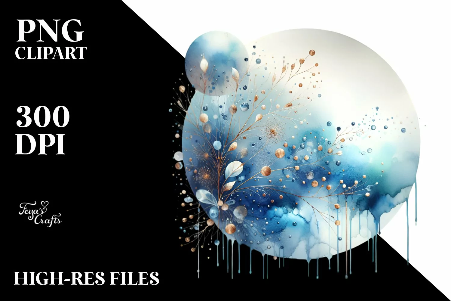 Colorful Blueis Watercolor Background with Metalic example image 1