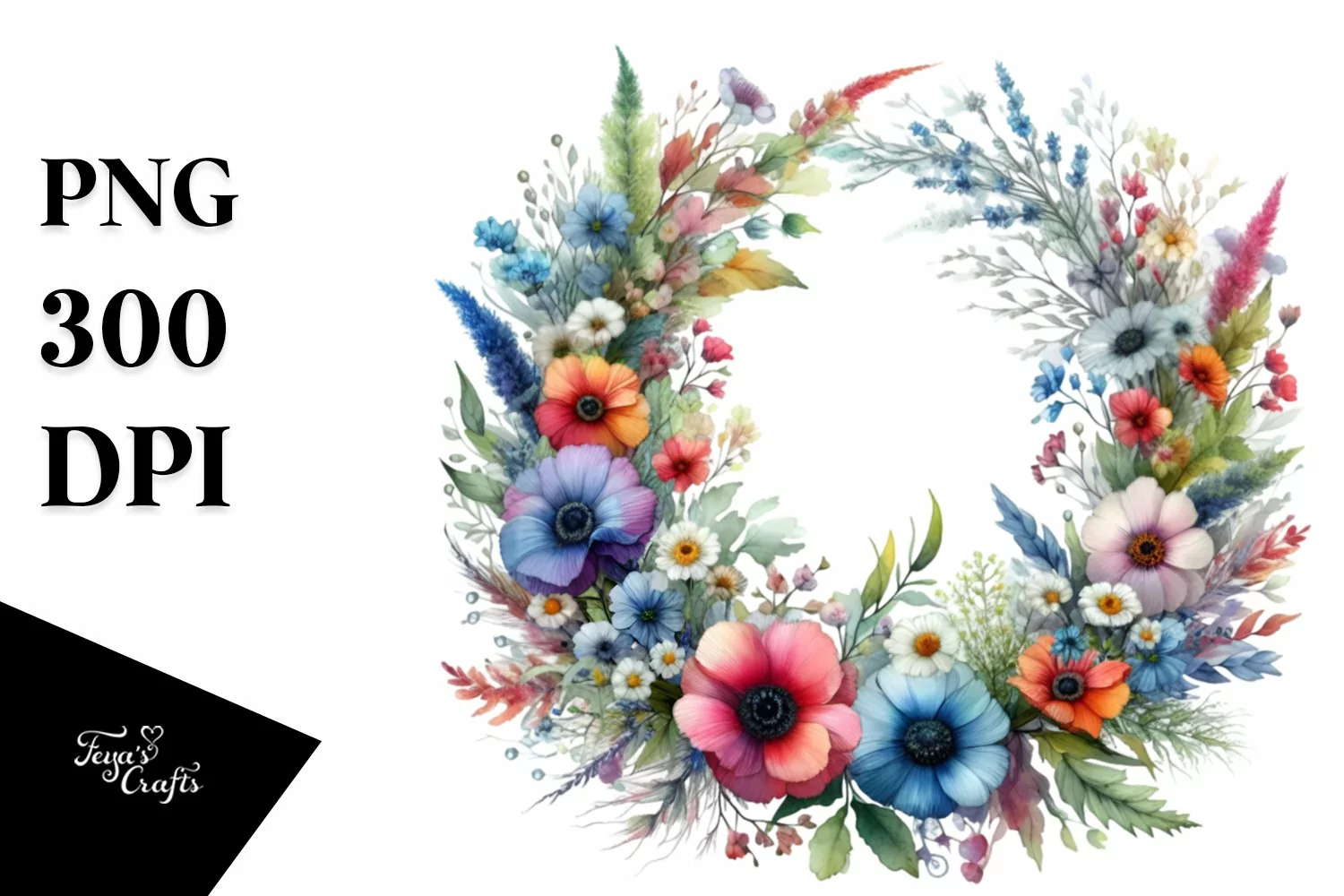 Watercolor Abstract Colorfull Whreath Clipart example image 1