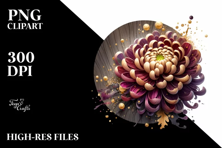 Glossy Chrysanthemum Watercolor | Sublimation Clipart