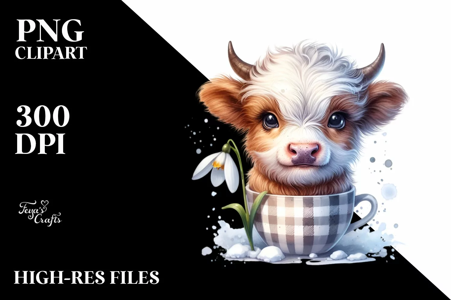 Cute Baby Highland Cow Snowdrop Cup | Sublimation Clipart