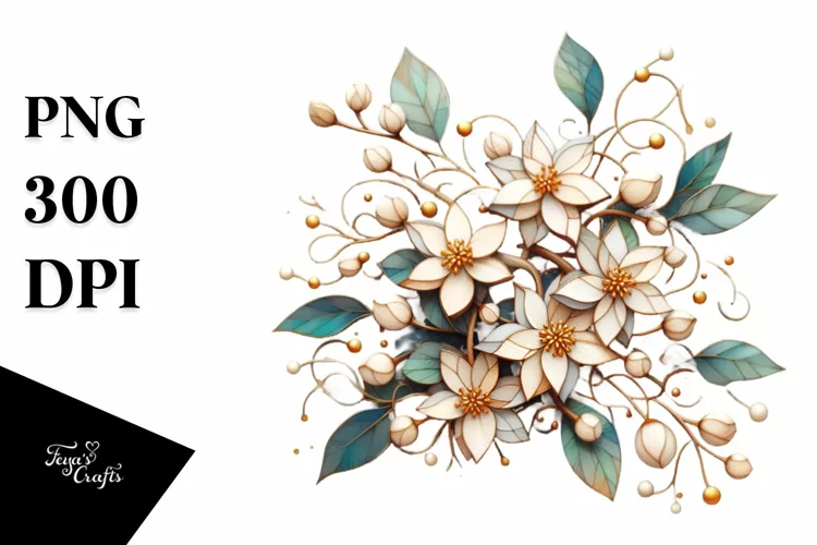 Watercolor Sticker Summer Flower Golden Wooden Png Sublimation Jasmine Stainedglass
