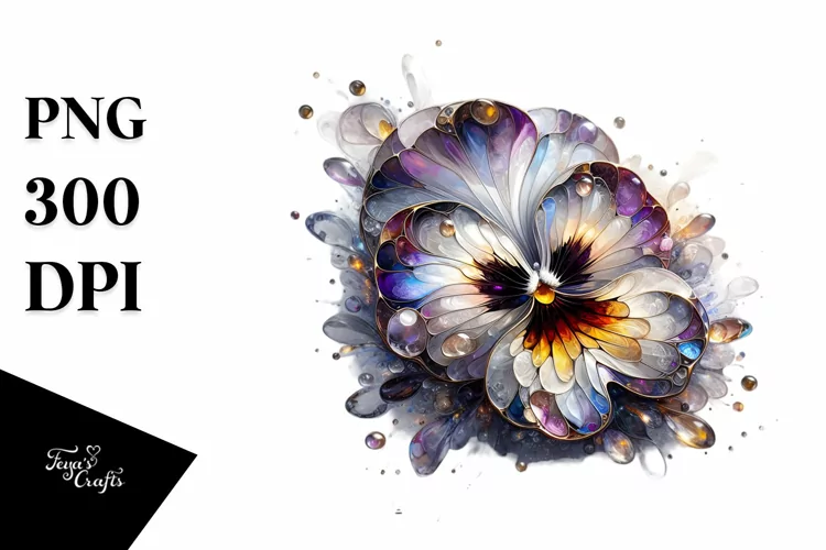 Watercolor Glossy Splash Abstract Pansy Whitebackground Metallicinsertions Glass-likematerial