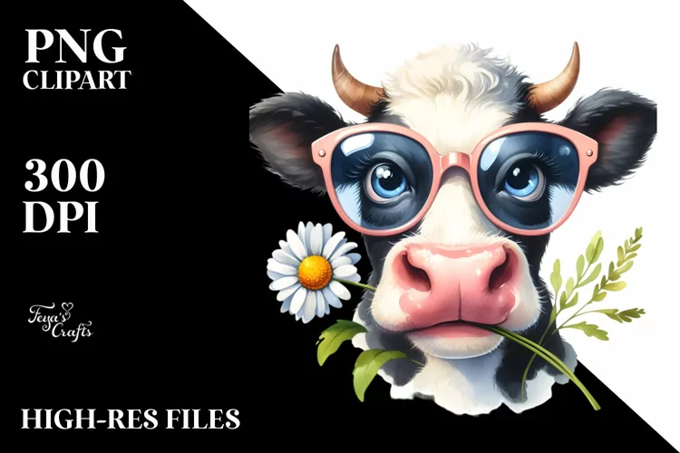 Similar Design Products to Cow with Goofy Smile and Daisy | Clipart