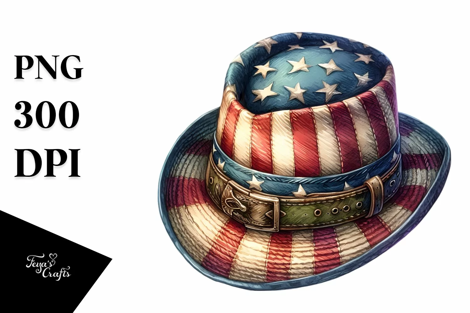 Vintage Hat in USA Flag Colors | Sublimation Clipart example image 1