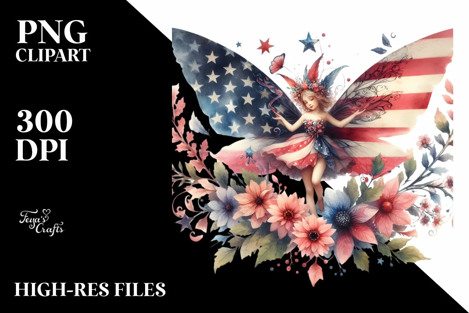Vintage Fairy in USA Flag Colors | Sublimation Clipart example image 1