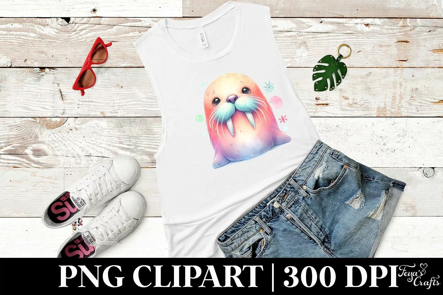 Watercolor Sticker Summer Cute Flower Vibrant Png Pastel Walrus Sublimation