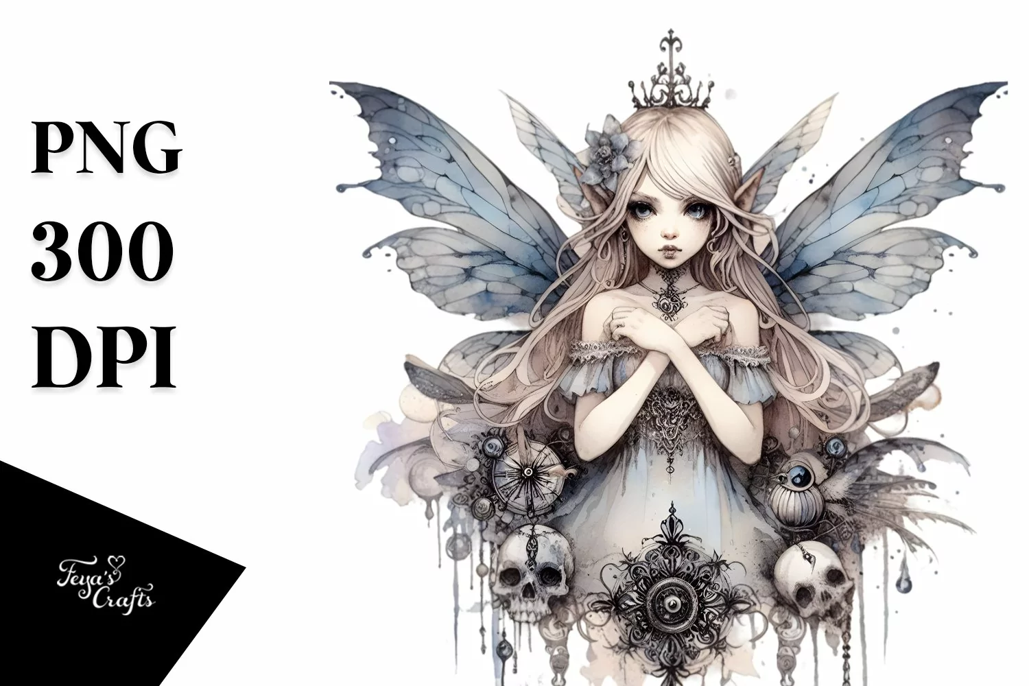 Washed Gothic Fairy Sublimation Clipart example image 1