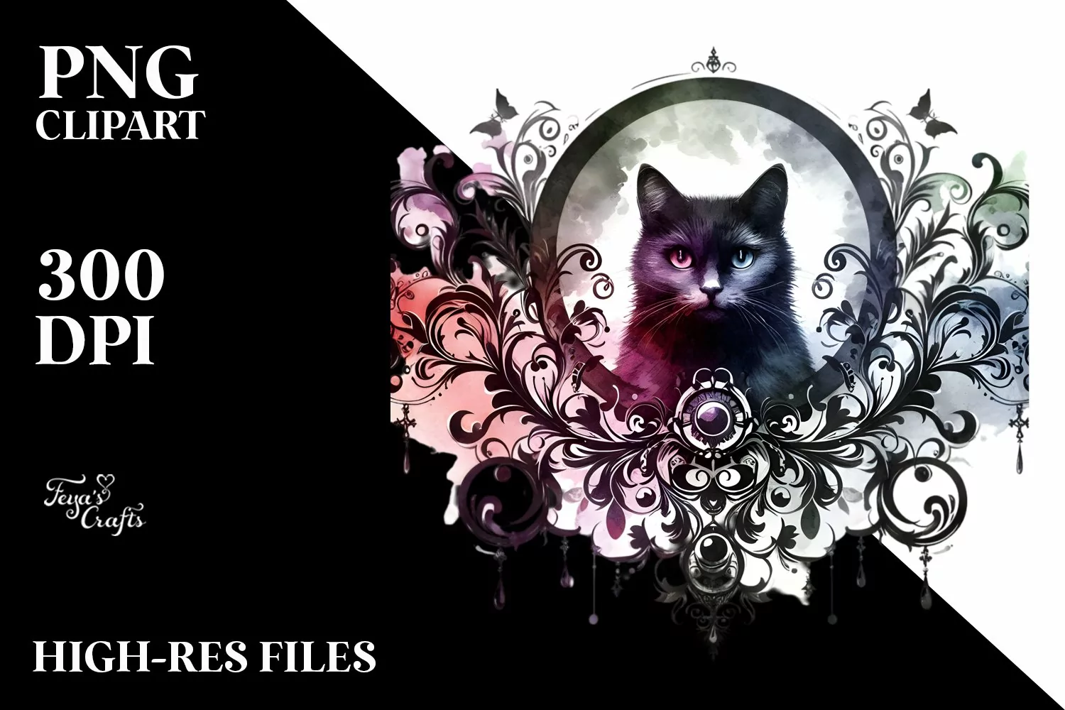 Similar Design Products to Washed Gothic Cat Flowers | Sublimation Clipart