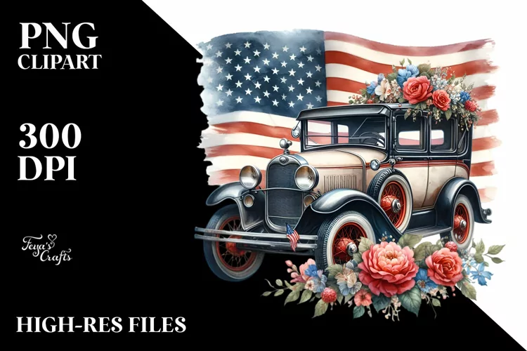 Watercolor Sticker Summer Flower Flowers Background Png Sublimation Usaflag Vintagecar