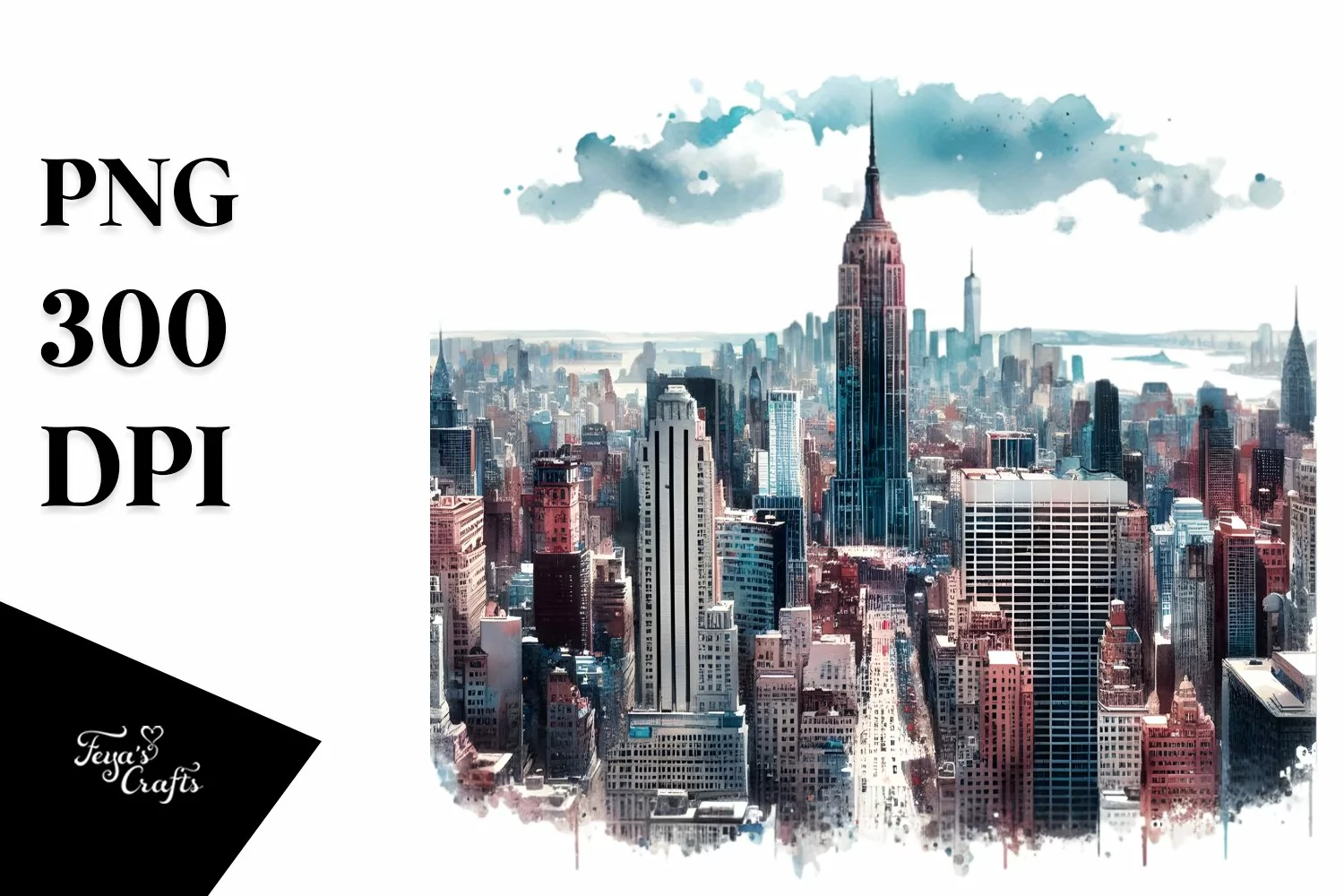Watercolor Sticker Summer Urban Flower Png Cityscape Skyline Manhattan Sublimation