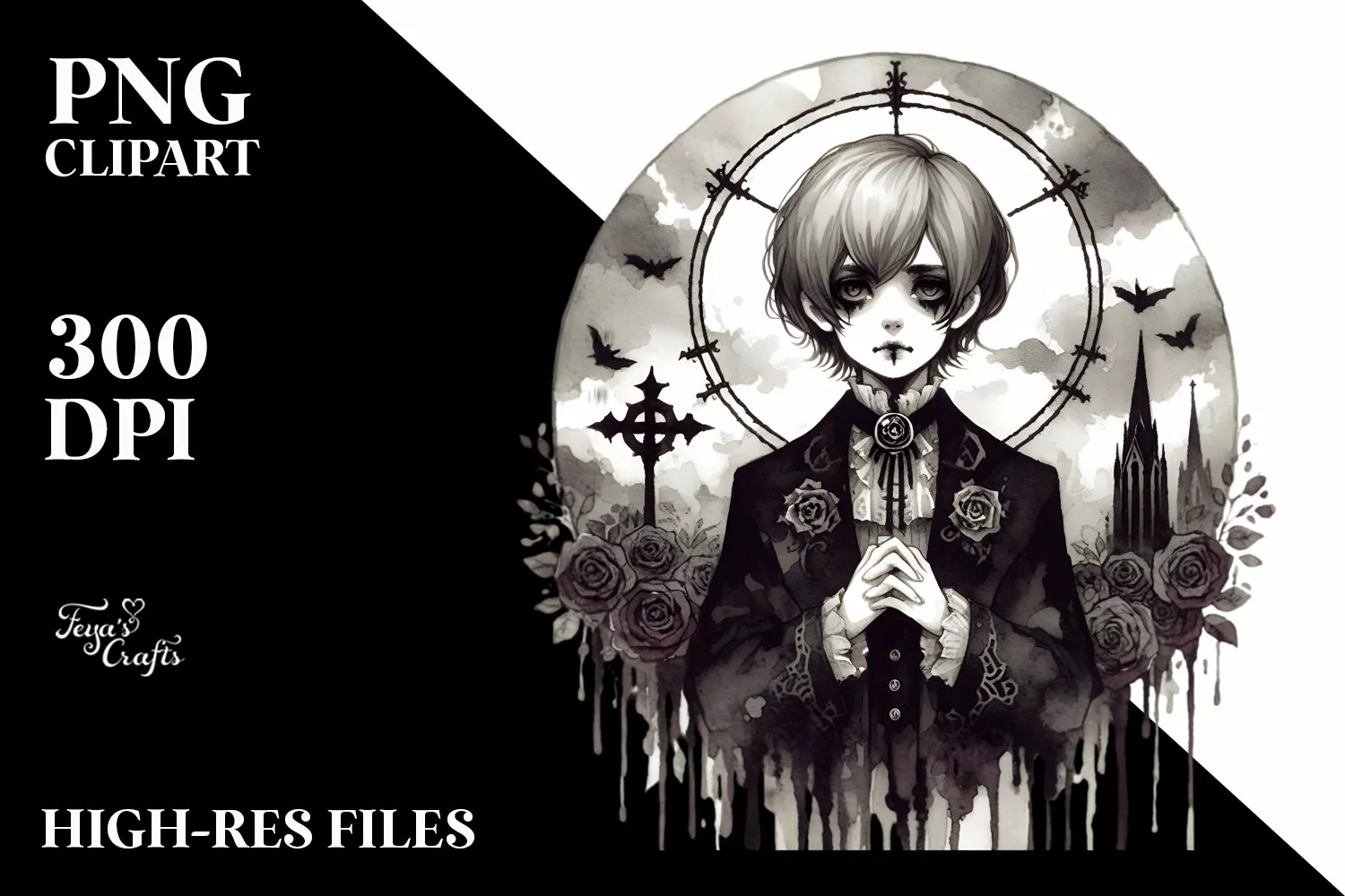 Similar Design Products to Washed Watercolor Gothic Boy | Sublimation | Clipart