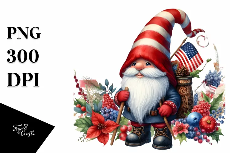 Vintage Gnome,USA Flag | Sublimation | Clipart