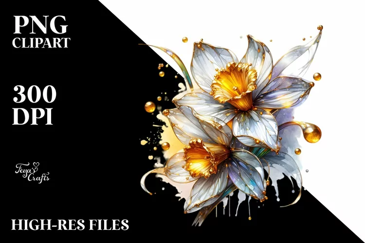 Sticker Summer Flower Shiny Abstract Png Sublimation Narcissus Goldeninsertions Madeofglass
