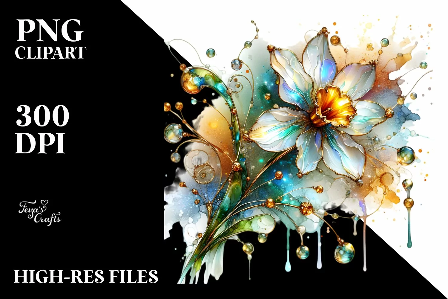 Sticker Summer Flower Shiny Abstract Png Sublimation Narcissus Goldeninsertions Madeofglass