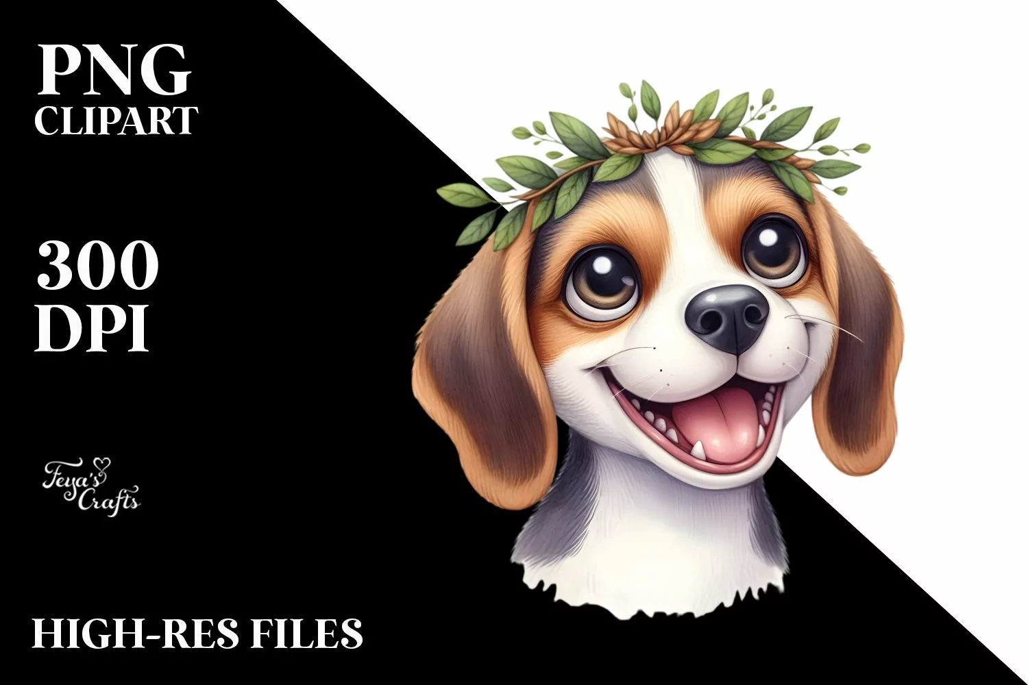 Funny Baby Beagle With Wreath | Sublimation | Clipart example image 1