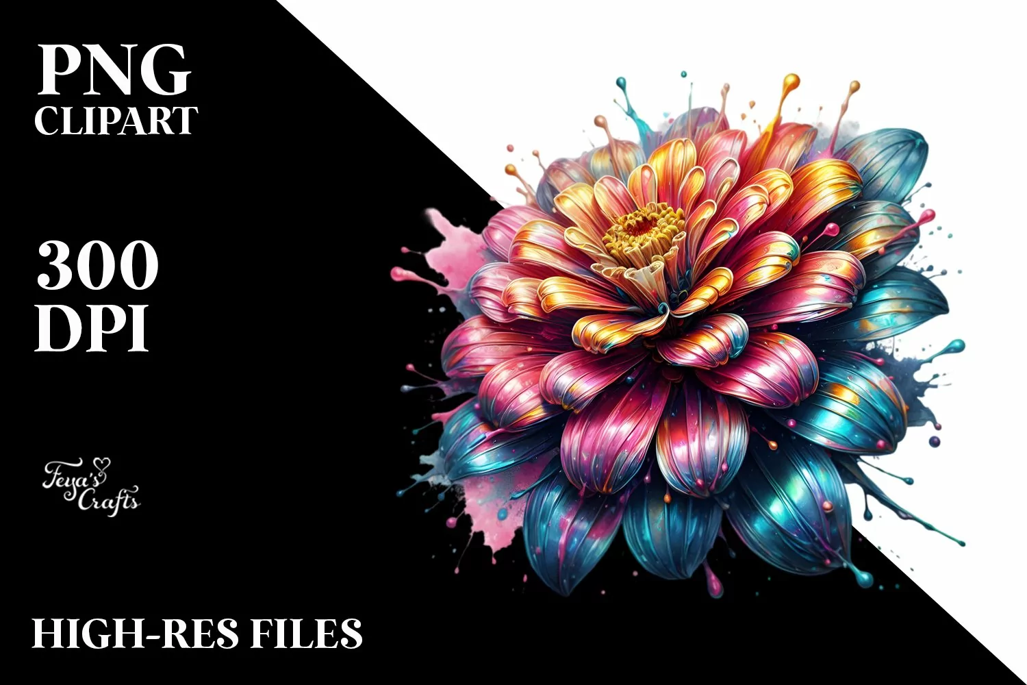 Sticker Summer Flower Shiny Splash Abstract Png Material Sublimation Zinnia