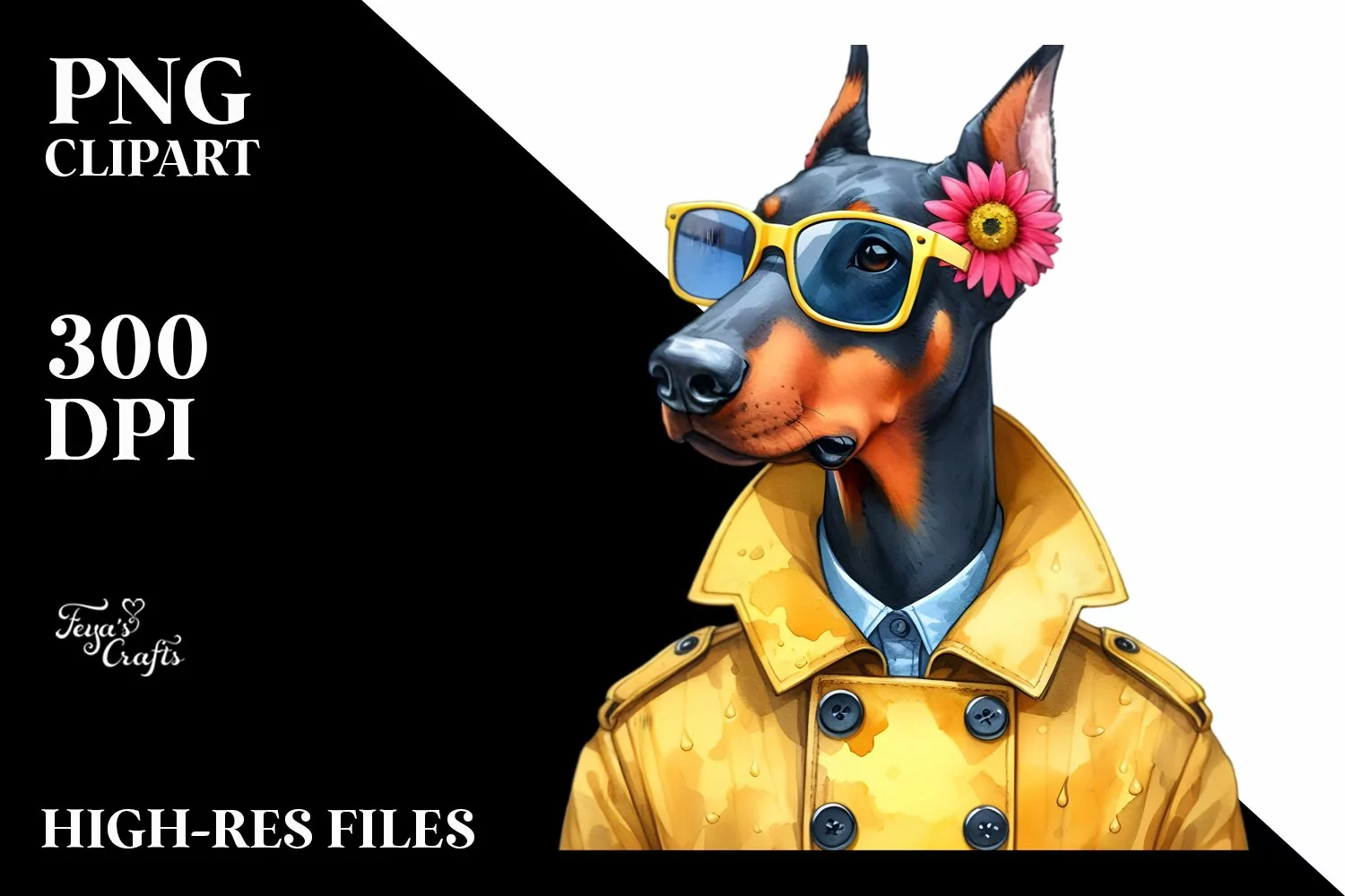 Confused Doberman Pinscher Caricature-Like with Raincoat example image 1