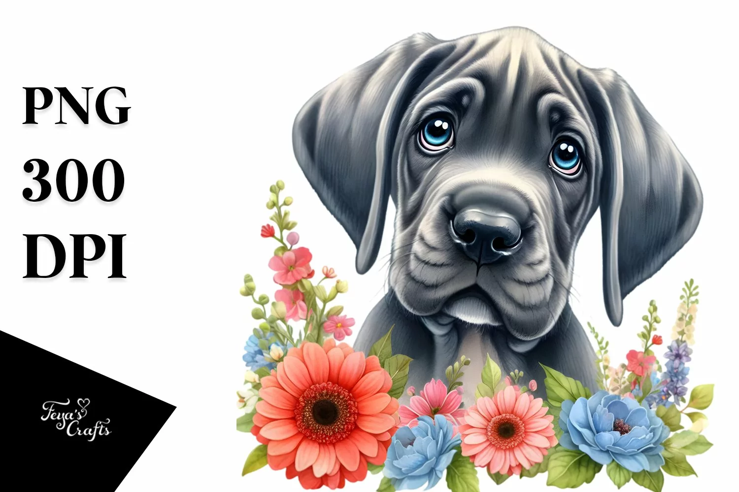 Watercolor Funny Baby Great Dane | Clipart example image 1