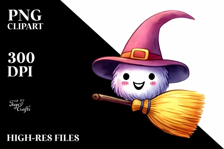 Funny Broom Watercolor Splash Clipart