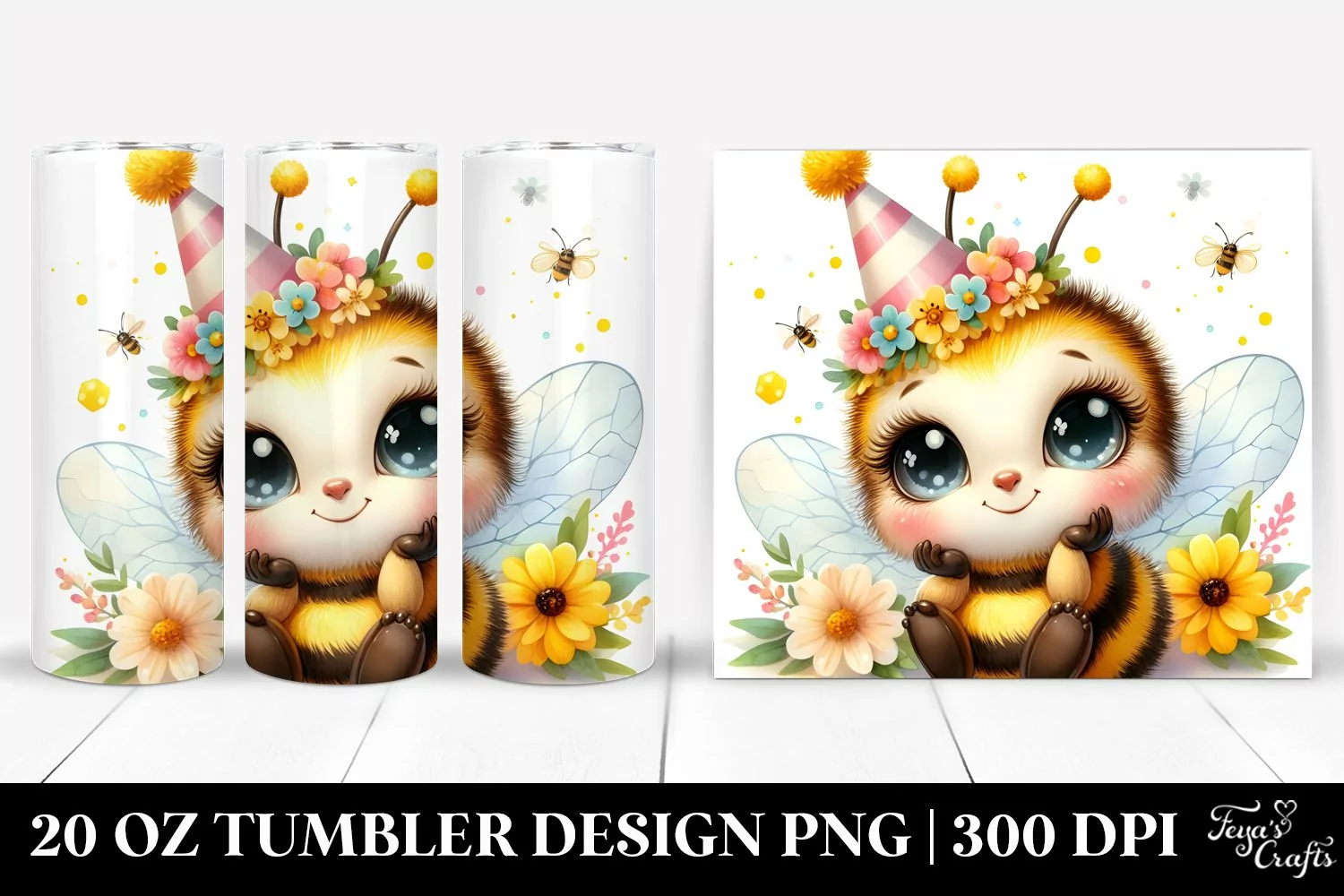Similar Design Products to Cute Colorful Watercolor Baby Bee Smiling Party Hat | 20 oz