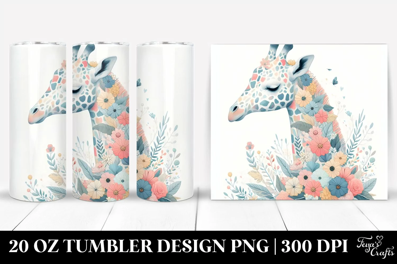 Colorful Pastel Giraffe Floral | 20 oz Tumbler example image 1