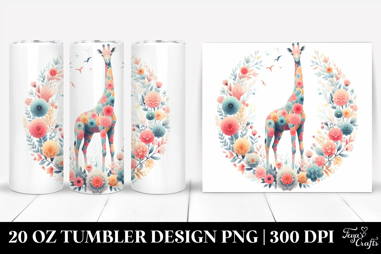 Colorful Pastel Giraffe Floral | 20 oz Tumbler example image 1