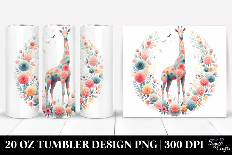 Colorful Pastel Giraffe Floral | 20 oz Tumbler