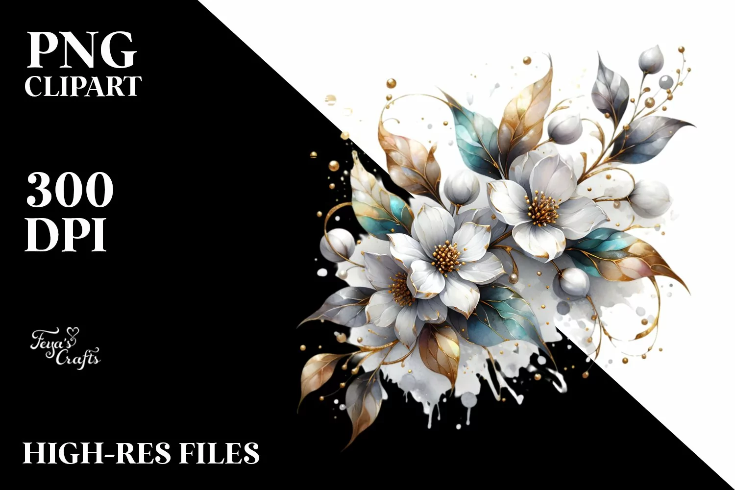 Sticker Summer Artistic Flower Golden Abstract Png Sublimation Jasmine Shinymaterial