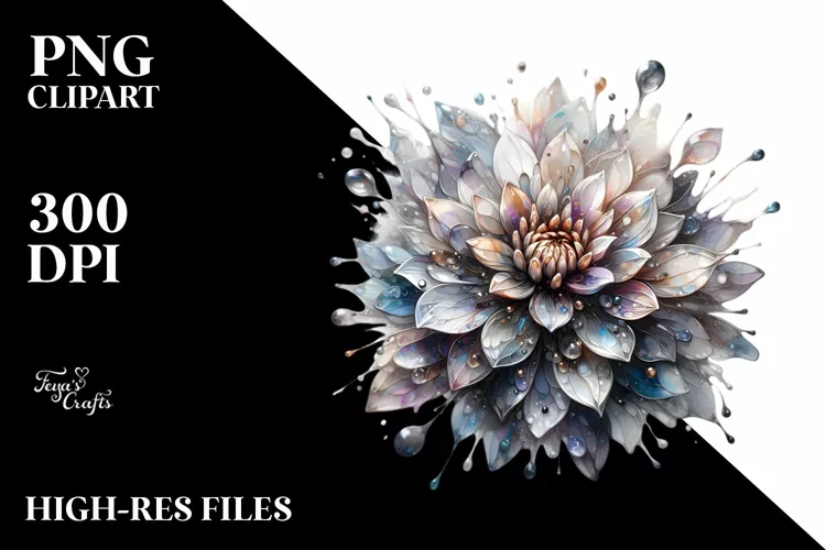 Watercolor Sticker Summer Flower Abstract Dahlia Png Glass Metallic Sublimation
