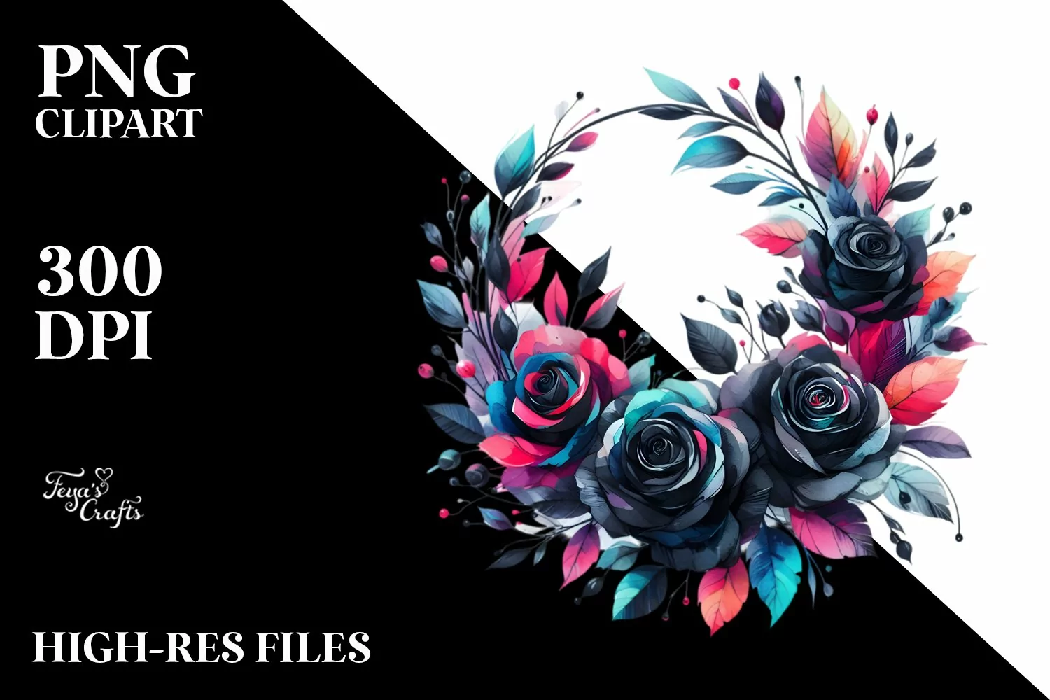 Watercolor Sticker Summer Flower Abstract Vibrant Png Sublimation Whreath Blackroses